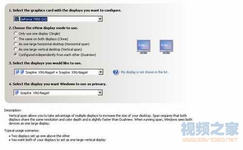 在Nvidia的驱动控制面板中,我们已经可以看到系统识别出的2块7950GX2